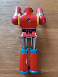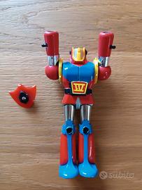Originale robot della serie Astrorobot. Boss Palder n.4. Robot in ottime condizioni, articolazioni rigide, cromature in ottimo stato. Meccanismi di sparo dalla cintura e dei pugni funzionanti. Calamita della testa perfetta. Segnalo mancanza dell'arma la mazza chiodata. Box in buone condizioni ad eccezione di un difetto nel retro. Polistirolo senza rotture e comprensivo anche del coperchio.