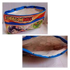 Astuccio-Bustina Portapenne di DragonBall con doppia cerniera , la cui cerniera principale, ovvero la prima, non funziona più ed è stata sostituita con tre bottoni a pressione e in metallo antiruggine, per la chiusura