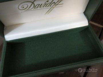 Astuccio originale per pipa DAVIDOFF - completa di custodia - busta in tessuto. Esterno in pelle verde con scritte e profili in oro