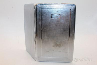 Questo affascinante astuccio portasigarette inglese risalente agli anni '40 rappresenta un esempio perfetto di eleganza funzionale d'epoca, realizzato con la celebre finitura EPNS che garantisce la lucentezza dell'argento unita alla resistenza del metallo di base. L'oggetto si distingue per un design sobrio e raffinato tipico del gusto britannico della metà del secolo scorso, con una superficie esterna caratterizzata da una lavorazione metallica curata che ne esalta il profilo sottile e l'ergonomia. Con le sue dimensioni generose di 85 x 131 mm, questo portasigarette offre un equilibrio ideale tra capienza e portabilità, scivolando agevolmente nel taschino di una giacca o in una borsa elegante. La struttura dell'astuccio è solida e presenta una chiusura a scatto ancora scattante e sicura, testimonianza dell'eccellente qualità manifatturiera inglese del periodo bellico e post-bellico. All'interno, lo spazio è organizzato per accogliere le sigarette in modo ordinato, preservandone l'integrità e il fascino retro che solo un oggetto originale del 1940 può trasmettere. Questo pezzo non è soltanto un accessorio per fumatori, ma un vero e proprio frammento di storia del costume, perfetto per il collezionista esigente o come regalo di classe per chi apprezza gli oggetti che sanno raccontare un'epoca di intramontabile distinzione.