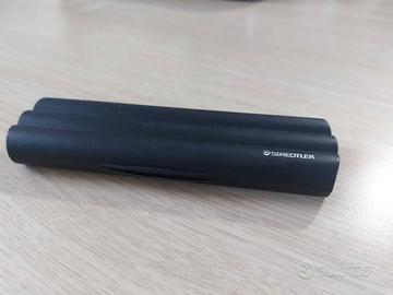 astuccio portapenne Staedtler . In plastica leggera, chiusura a scatto. Qualche segno del tempo ma complessivamente in buone condizioni. (la penna della foto non è inclusa)