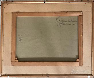 Titolo : Paesaggio calabro, 1984 olio su tela 60x80 cm, firma in basso a destra, firma e titolo al retro, opera registrata presso l'Archivio Fotografico Generale delle Opere di Athos Faccincani come da dichiarazione su foto con firma dell'artista.Certificato di provenienza di nota casa d'aste