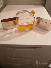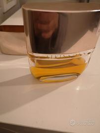 Bottiglia Atkinson uomo anni '70 vetro e metallo. Circa un terzo di contenuto originale. Leggermente sciupata dal tempo sotto (vedi foto) H 9,5 X 9 cm