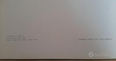 Esemplare del Nuovo Atlante Scolastico edito da Fratelli Fabbri editore nel 1971 (seconda edizione), opera curata dai cartografi Umberto Neri e Franco Sghedoni, caratterizzata da una grafica vintage iconica, con una copertina rigida e una griglia di mappe a colori. Ricco di tavole cartografiche dettagliate, mappe fisiche e politiche, con focus particolare su Italia, Europa e continenti extraeuropei. Formato grande 28,5 x 33 cm