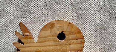 Vendo attaccapanni/specchio a forma d’orso In omaggio, uccellino in legno decorativo da appendere.
