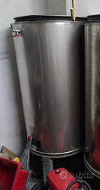 1 × Cisterna inox 200 L “sempre pieno” con camera d’aria e coperchio in acciaio – € 150 • Perfetta per travasi o piccoli lotti.