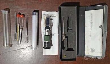 Pompa filtraggio con dischi in cartone, un pacco nuovo ancora sigillato la pompa si può usare anche per il travaso, più filtro con telo refrattometro e vari dispositiva per controllo grado alcolico il tutto usato ma in ottime condizioni
