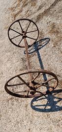 vendo a prezzo offerta attrezzatura antica per lavorare la terra, ottima per collezione o mostre. Erpice, estirpatore, aratro, ruote a raggi per carro.