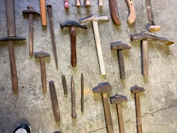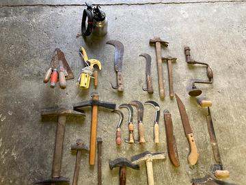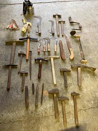 Attrezzi antichi da lavoro, martelli, piccozze, roncole eccetera, chiedere prezzo per articoli.