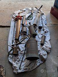 Circa 57 tra Lime metallo e Raspe legno. Circa 40 Raschietti varie dimensioni, circa 10 pialle legno varie dimensioni, 4 Squadre misurazione legno, 1 Squadra in metallo, una livella in legno e una in metallo, circa 6 Cassette di taglio cornici in legno. Due Setacci vecchi in metallo. Otto Setacci in legno. Una bilancia vecchia e un Secchio in metallo con due manici da Muratore Caldarella napoletana. Sette Attaccapanni vecchi in legno. Tre Ingrassatori a pressione, Una Torcia Ossidrica a Petrolio in ottone, Tre Pompe verderame in ottone, Tre Erogatori/Spruzzatori a pressione in ottone. Il prezzo dipende dall'articolo e si accettano offerte per vendere tutto in blocco.