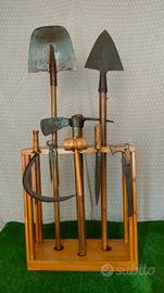 Sugli utensili è stato eseguito un trattamento naturale per realizzare un caratteristico effetto ruggine sul ferro (tipo Corten).