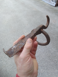 Cesto in ferro 20 euro. Gancio da muro per legare i cavalli 10 euro. 4 cerchi da botte 29 euro.