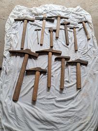 Martelli, Piccozze vari usi, Mazzette grandi e piccole, in totale circa 50 pezzi, per lavori da carpentiere, calzolaio, falegname, ecc..