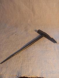 Attrezzo antico in ferro battuto, probabilmente usato per sgranare le pannocchie di mais.