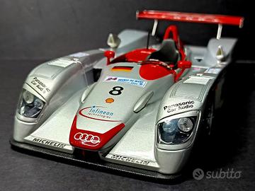 Modello in metallo brand Maisto GT Racing prototipo da competizioni vincitrice 5 volte la 24 ore di Le Mans e 6 volte la 12 ore di Sebring. Audi Sport Team Joest.
