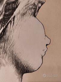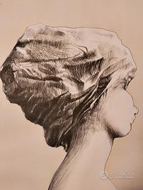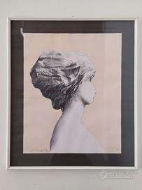 Augusto Murer - Donna di profilo, 1973 - rara stampa probabilmente litografia, carta applicata su cartoncino, dimensioni della carta cm 57 x 47 (cornice cm 72 x 62 x 3).