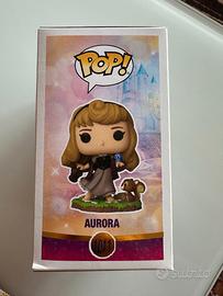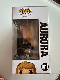 Funko Pop di Aurora, numero 1011, della linea Disney Princess. La figure presenta Aurora con un uccellino azzurro e uno scoiattolo.