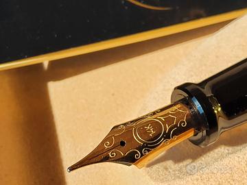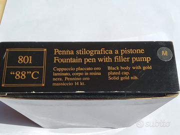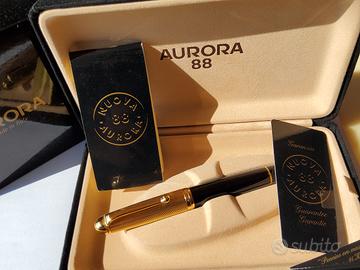 Penna stilografica Aurora 88 Big, NUOVA, mai usata, elegante e lussuosa con pennino in oro 14k 585 decorato, caricamento a pistone, con scatola originale e controscatola in cartone. Versione con cappuccio laminato in oro, la più amata e ricercata.