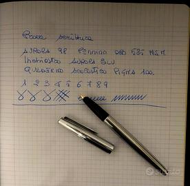 Fabbricante: Aurora Modello: 98 Anno di produzione: 1963 >>> 1970 Materiale e misura del pennino: Oro 585. misura M. (usato pochissimo) Sistema di caricamento: Cartuccia. Materiale penna: Sezione resina plastica, corpo e cappuccio, rivestimento metallico. Condizioni estetiche: Ottime. Condizioni meccaniche: Ottime. No scatola.