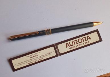 Penna a sfera Aurora in argento 925 dorato con garanzia, mai usata, astuccio originale.