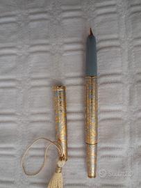 Aurora stilografica detta "Madamin " con eleganti incisioni su fondo dorato.