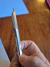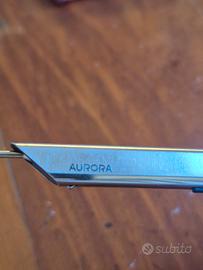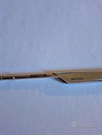 Penna sfera Aurora Thesi. Disegnata da Marco Zanuso nel 1974 fu la prima penna realizzata da un singolo tubo d'acciaio e una tra le prime esposta al MoMA a New York e tutt'ora esporta tra gli oggetti di design. Refill originale. inchiostro blu.