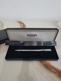 Aurora Vintage Penna a sfera cromata satinata, A 29 S.MA 11 in perfette condizioni. Con il proprio cofanetto e cartoncino originale con il numero del modello. È stata sempre conservata con cura dentro il cofanetto. Molto probabilmente mai usata, ma non ho la certezza su questo.