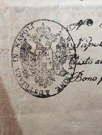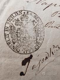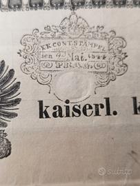 Austria 1844 Passaporto Raro E Originale con Splendidi Timbri e punzoni. passaporto storicorilasciato a Praga il 22 maggio 1844. Titolare:Karl Stelzig, nato nel 1814 e residente a Neinschönau. Professione:Commerciante (Handelsgehilfe). Destinazione:Palermo. Validità:Un anno.