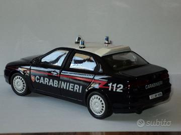 Vendo modellini auto carabinieri 156 CC 1:24 e le altre 1:43, l'alfa 156 ha dei piccoli segni di usura le altre sono ancora imballate come in foto