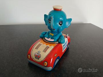 Giocattolo auto in latta con personaggio prodotta negli anni '60 da Yonezawa, made in Japan, lunghezza cm. 17, in ottime condizioni, testata (movimento mistero, l' elefantino ruota la testa a destra e sinistra) cedo euro 35 NON trattabile. Gradito ritiro a Martinengo (BG) o accurata spedizione tracciata.