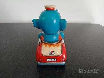 Giocattolo auto in latta con personaggio prodotta negli anni '60 da Yonezawa, made in Japan, lunghezza cm. 17, in ottime condizioni, testata (movimento mistero, l' elefantino ruota la testa a destra e sinistra) cedo euro 39 NON trattabile. Gradito ritiro a Martinengo (BG) o accurata spedizione tracciata.