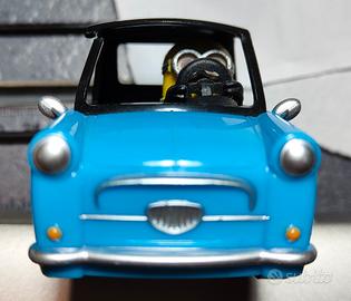 Originalissimo modellino da collezione molto particolare realizzato dalla Dream Tomica di Takara Tomy raffigurante Stuart (Minion) alla guida dell'auto di Lucy Wilde.