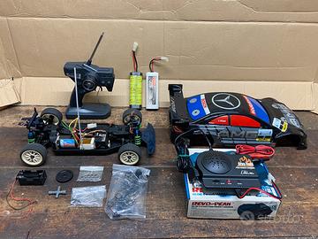 Completa di carrozzeria Mercedes clk amg, accessori, 2 batterie (1400 e 1900ah) radiocomando, scatola originale con tutte le istruzioni e caricabatterie con la sua scatola ed istruzioni.