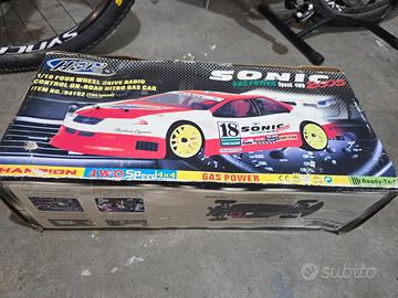 Auto RC radiocomandata a scoppio / nitro HSP, scala 1/10, praticamente nuova, messa in moto, eseguito rodaggio con un serbatoio, carburata, provata su strada libera per testare il funzionamento, lubrificato il motore con olio specifico after run e riposta nella scatola. La carrozzeria è perfettamente nuova, mai montata, nessun difetto o segno di usura. Sono stati eseguiti alcuni upgrade come scarico completo in metallo, servo maggiorato con ingranaggi in metallo e squadretta in metallo per lo sterzo. Inclusi radiocomando ovviamente funzionante, scatola originale, carrozzeria, clip per fissaggio, scarico originale il plastica, alcuni accessori presenti in foto. Valuto offerte, contattatemi pure per qualsiasi domanda. E' possibile la consegna a mano in zona Lugo, Faenza e dintorni, disponibile anche la spedizione. Offro e pretendo massima serietà.