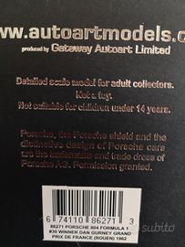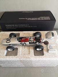 Come da titolo, cedo dalla mia collezione marca AUTO ART SEGNATURE stupendo e raro modello Porsche 804 Formula 1 Winner of 1962 Grand Prix de France di colore Argento Metallizzato come da foto. Scala 1:18