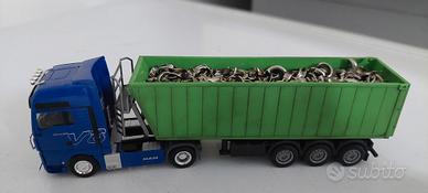 vendo in blocco 3 camion autoarticolati ed un autobus sono in scala 1:87 HO per modellismo ferroviario Piko Roco Vitrains, i mezzi sono pari al nuovo un veicolo è stato da me invecchiato ed aggiunto il carico. Possibilità di spedizione a carico dell'acquirente .