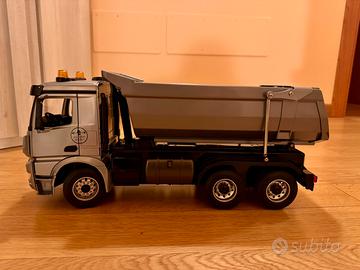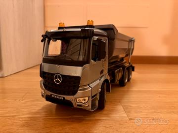 AUTOCARRO CON CASSONE RIBALTABILE DOUBLE E MERCEDES-BENZ AROCS IN SCALA 1:20 RTR Tipo: RTR Scala: 1/20 Dimensioni: circa 45 × 16 × 20 cm Peso: circa 3,2 kg Batteria: 7,4 V 1200 mAh Telecomando: 2,4 GHz Funzioni: sterzo/velocità completamente proporzionali, cassone ribaltabile, luce, suono.