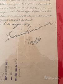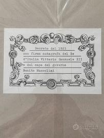 Foglio di decreto 1925 con firma sutografa di Re Vityorio Emanueke III e di Mussolini. In ottimo stato imbustato in custodua protettiva acquistato negli anni 80 in una nota libreria antiquaria di Milano. Preferisco ritiro a mano, ma se necessario posso spedire. Prezzo 275€ …