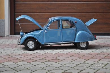 Un 2 cv in scala con 95 % identica a un 2 cv 1963, tutta in lamiera di acciaio, alluminio, e rame, non ci sono plastiche come in quell modello di 62 anni fa. serrature funzionanti, sterzo, motore con la sua ventola che gira e anche con rumore di qualcosa come mágico, le sue sospensioni perfette anche con una persona sopra e non fiatta nemmeno; i vetri delle porte si alzano mediante una piccolissima farfalla che fa da cerniera, come l'originarle, verlo da vicino con i suoi sedili pronte per mettere un bambino seduto e somiglierebbe a una persona da piccolissimo sul 2 cv, A gli amanti del automodellismo dico di vederlo di persona per valorare un lavoro fatto totalmente a mano essendo un articolo di arte pura secondo gli esperti che lo hanno visto. chiarisco che e un pezzo unico ed'e a Boves, Cuneo, dove e satato costruito. Non scrivo prezzo di vendita ma chiarisco che si vende per una cifra a quattro zeri e accetto offerte.