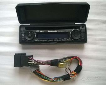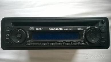 Autoradio Panasonic CQ-C1021N, Radio AM/FM, CD Player, orologio, con sistema RDS che mostra informazioni dinamiche come stazione/ titolo canzone/ artista aggiornamenti traffico sul display illuminato blu, 4 x 45W, predisposto per 1 x 2,5V amplificatore, equalizzatore, bilanciamento sx/dx, fader altoparlanti anteriori/posteriori, tastino ´mute´, nero con tastini retroilluminati rosso, frontalino estraibile, manuale d'uso originale, misure 17.8 x 5.0 x 15,5 cm, funzionante ed in ottime condizioni.