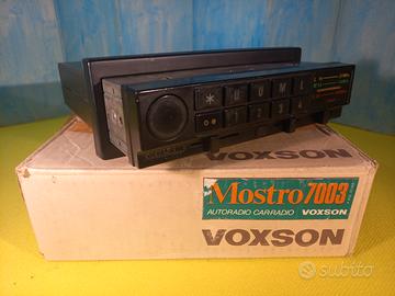 La pubblicità Voxson dell'epoca recitava "Il mostro ricorda e piace". Autoradio Voxson Mostro 7003 del 1977, seconda versione, completo di plancia; apparato estraibile ma frontalino fisso (mentre il 7001 era fisso con frontalino estraibile). Completo di scatola, manuale, garanzia dell'epoca e schema elettrico in copia. Funziona ma è da rivedere perché a volte, la stazione si sposta di poco dopo che è stata sintonizzata. A richiesta posso inviare video di funzionamento (chiamando il 3487146039). 16 stazioni radio preselezionabili (8 in FM, 4 in OM e 4 in OL). Si astengano i perditempo. Questa è una vendita tra privati, con esclusione di garanzia e con la formula "visto e piaciuto". L'oggetto è venduto "così com'è" e non è prevista nessuna restituzione.