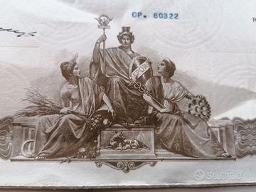 Certificato azionario autentico (non è una riproduzione) ben conservato, potrebbe presentare dei piccoli segni dovuti dal tempo e dall'originalità del pezzo.