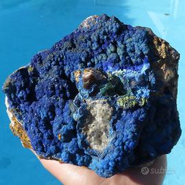 Minerale: AZZURRITE, MALACHITE Provenienza: Marocco Misure: 16x13x9 cm Peso: 2310 g Grande e stupendo esemplare di azzurrite in cristalli globulari con malachitre verde su matrice proveniente dal Marocco SKU 213