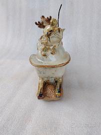 Babbo Natale sulla sua slitta trainata da una renna. oggetto Vintage realizzato in ceramica con uno stile artistico.