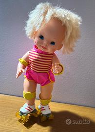 Originale Mattel, prodotta nei primi anni '80, una delle bambole più amate e ricercate dell'epoca. Raffigura una dolcissima bimba bionda con capelli folti, completino sportivo rosa e giallo, calzettoni e pattini a rotelle funzionanti: basta azionarla e muove le gambe