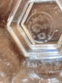Nonostante non sia mai stata utilizzata presenta due piccolissime sbeccature di un paio di millimetri sia sul coperchio che sul bordo inferiore del vasetto. Entrambe sono state fotografate con uno zoom massimo, ma sono quasi impercettibili a vista normale. La mia scrupolosità non mi consente di non menzionarli. Il prezzo tiene conto dei difetti.
