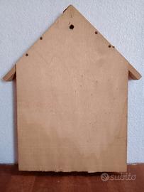 Bacheca o Espositore degli anni 80 a forma di casetta in legno al cui interno e cioè nelle varie postazioni, ci sono otto animali da cortile.