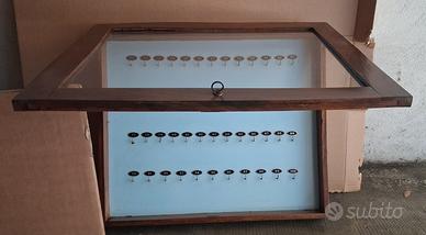 Bacheca in legno ganci numerati con anta in vetro e chiusura a chiave,anni 60/70 lo si denota anche dalla serratura e cerniere, in ottimo stato come da foto.