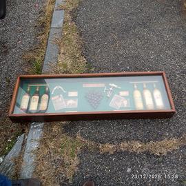 Pezzo unico bordato di legno adatto come complemento d arredo vini e tappi francesi in vetrinetta adatto per esposizione anche a muro