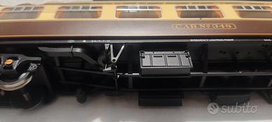 Difetti: la carrozza 39-310A presenta un punto di colla su una staffa nel sottocassa (visibile in foto), coma una piccola riparazione. La carrozza non era mai stata estratta dalla scatola, per cui è stato fatto in fase di inscatolamento in fabbrica.